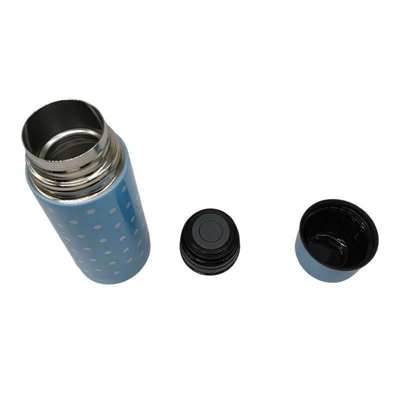 Бутилката за вода от неръждаема стомана Jianyang Fashion 304 има светлосин стил на точки, който е много свеж и привличащ вниманието, а също така има серия от плътни цветове, от която да избирате. Компанията е дълбоко ангажирана в производството на чаши и тенджери от 15 години, с годишен обем на доставка от над 2 милиона броя. Продуктите са преминали международни сертификати на FDA и LFGB и се изнасят на пазарите в Европа, Америка и Югоизточна Азия. Тяхното качество и обслужване са спечелили доверието на глобалните клиенти.